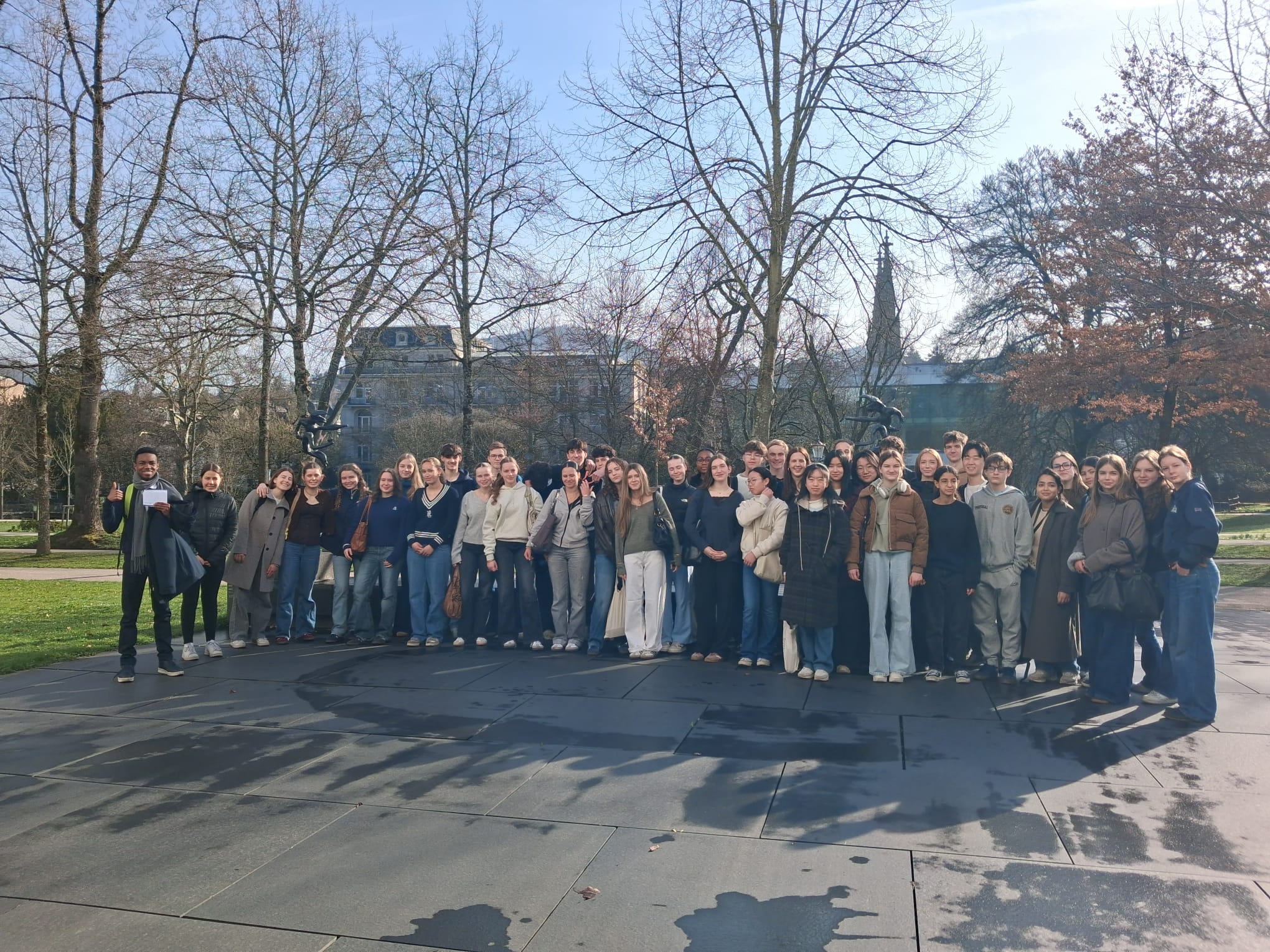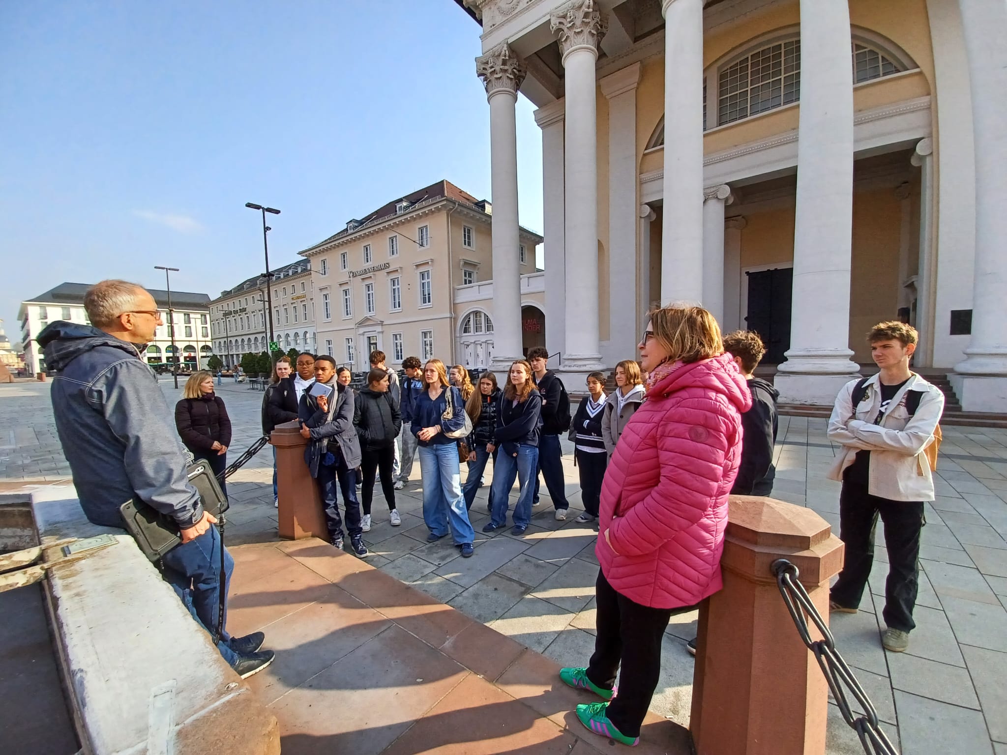 Aujourd'hui, place à un parcours dans Karlsruhe au fil des histoires franco-badoises avec des élèves curieux et ouverts à la découverte !
