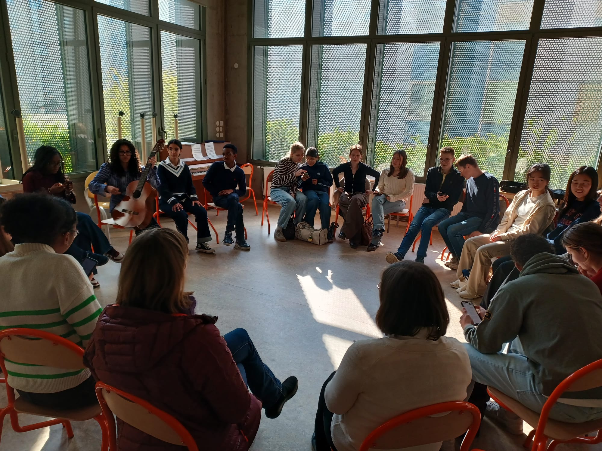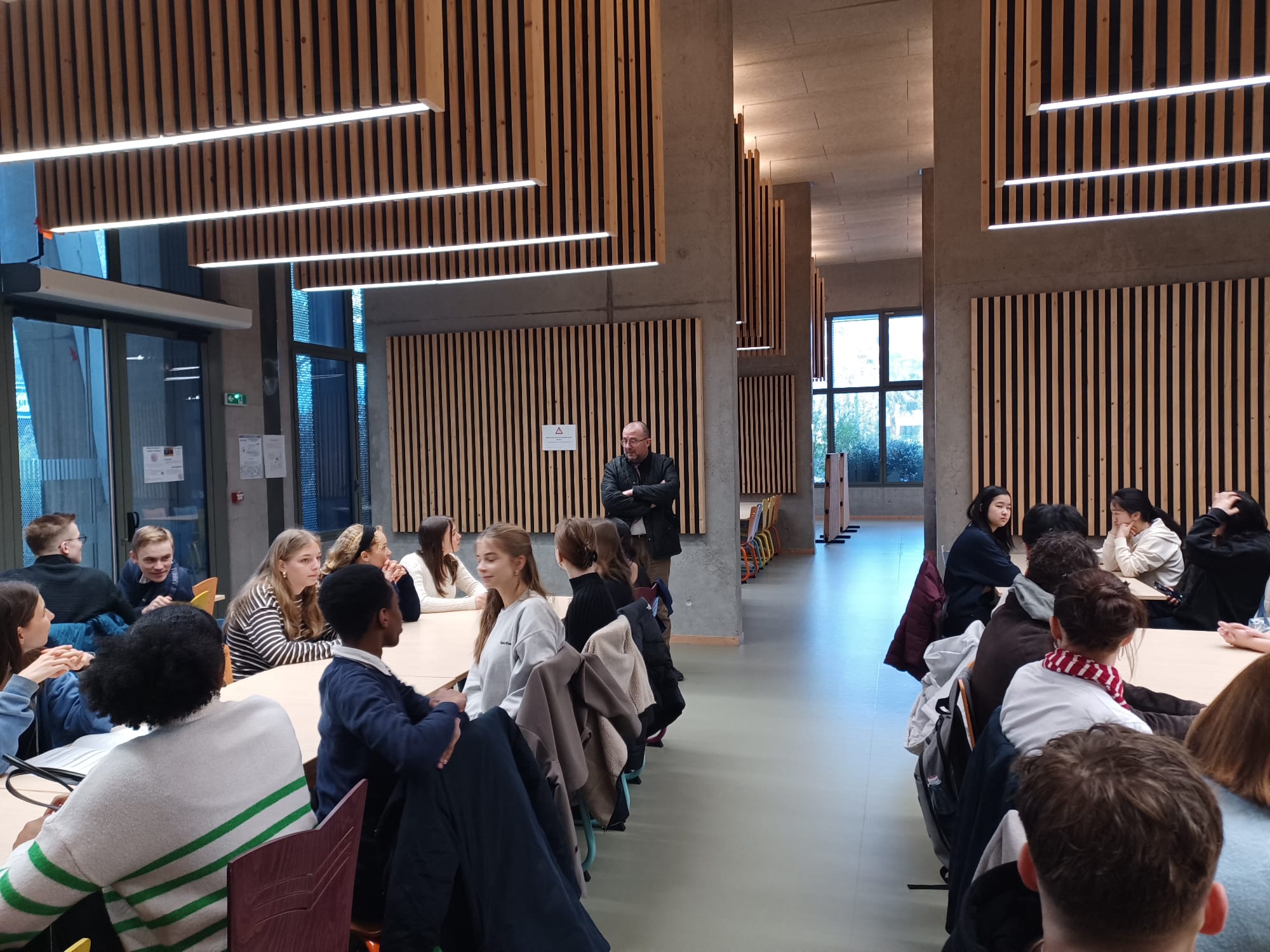 Joyeuses retrouvailles à la gare jeudi soir ! Au tour de nos correspondants allemands de découvrir le quotidien des élèves et de leur famille d'accueil. Et vendredi, le programme était riche pour le premier jour au lycée. Petit- déjeuner en commun dans notre très accueillante cantine, parcours pour mieux comprendre les particularités du système scolaire français, visite de cours, préparation de la sortie dans le Vieux Lyon mardi, recherche au CDI et instant musical offert par des élèves du lycée. Nous avons chanté ensemble aussi, avant de nous quitter pour un week-end nourri d'autres partages entre correspondants. Un immense merci à tous les personnels et les élèves pour leur soutien et leur implication généreuse !